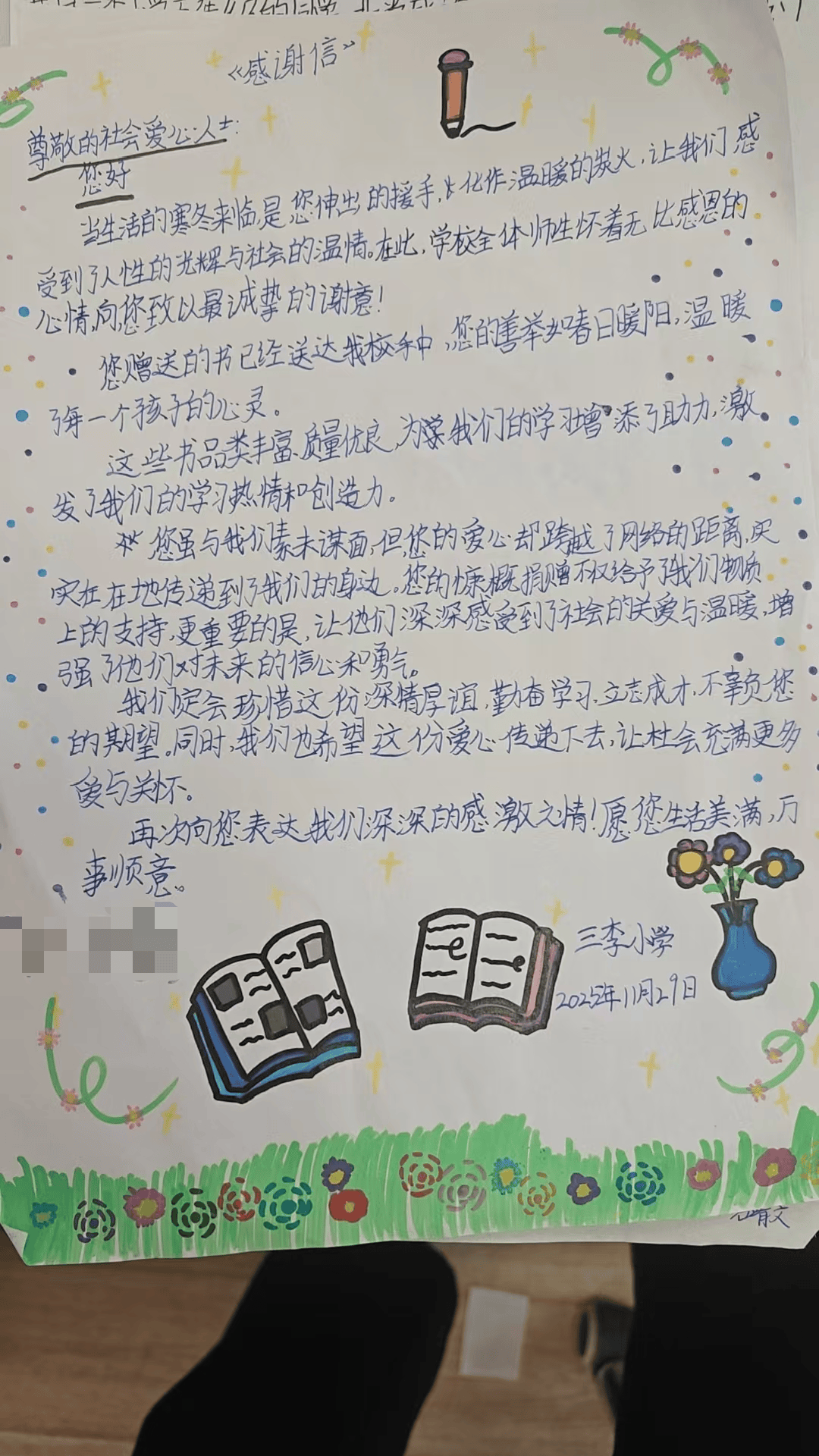 三里小学位于郑州市二七区樱桃沟管委会西南部,被天然森林氧吧所环绕,风景秀丽。学校始建于1948年,占地面积6500平方米,建筑面积4369平方米,现有在职教师17人,有6个教学班,学生222人。学校南楼属于新建的教学楼,配备有专门的图书室,图书室的环境很有书香气息,但是里面的书籍比较陈旧,庆幸的是在这两年在壹基金和芭莎课后一小时的图书捐赠下,图书室才有了生气。特别感谢的还有壹基金在2024年10月给我们每个教室捐赠了图书架,让这些书在教室里进行了流通,孩子们终于能够和书近距离接触,也让孩子们慢慢爱上了读书。但是书籍的数量还是远远达不到学生阅读的速度,特别感谢满天星公益给予的这次支持。