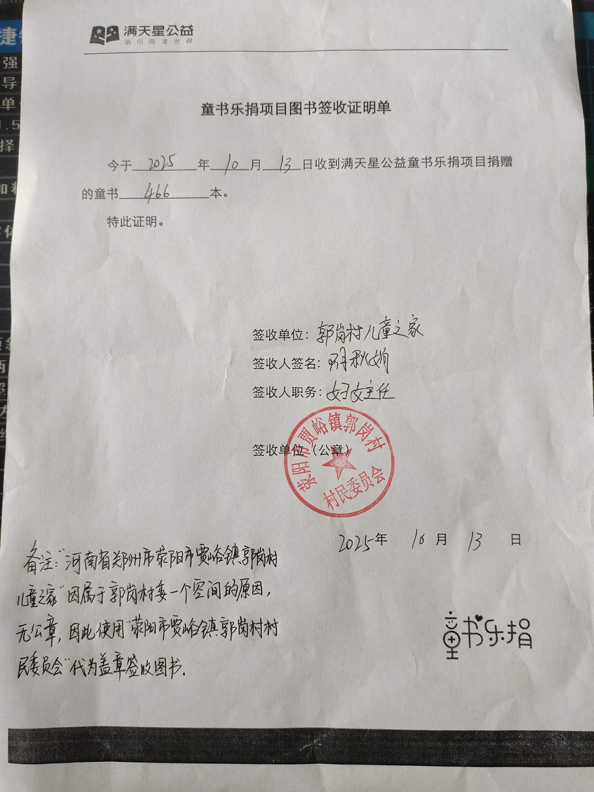 郭岗村儿童之家在2023年开展阅读活动,每周开展儿童主题活动,包括绘本阅读、生活课、公益通识等,站点配备社工两名,志愿者5名。儿童图书馆有单独的空间,配备有可阅读的书桌、电子设备、黑板、展架等设施。可容纳50人阅读,配备有书架、桌椅、多媒体设备等硬件设施。涵盖儿童绘本、青少年读物、妇女技能、基层党建、农民技术等书籍。 自2023年运营以来,以儿童借阅为主,以儿童文学和绘本为主要借阅内容。 活动开展有阅读分享会、亲子故事会、漂流图书馆等常规活动,演讲与绘画比赛、培育阅读推广人等特色活动。