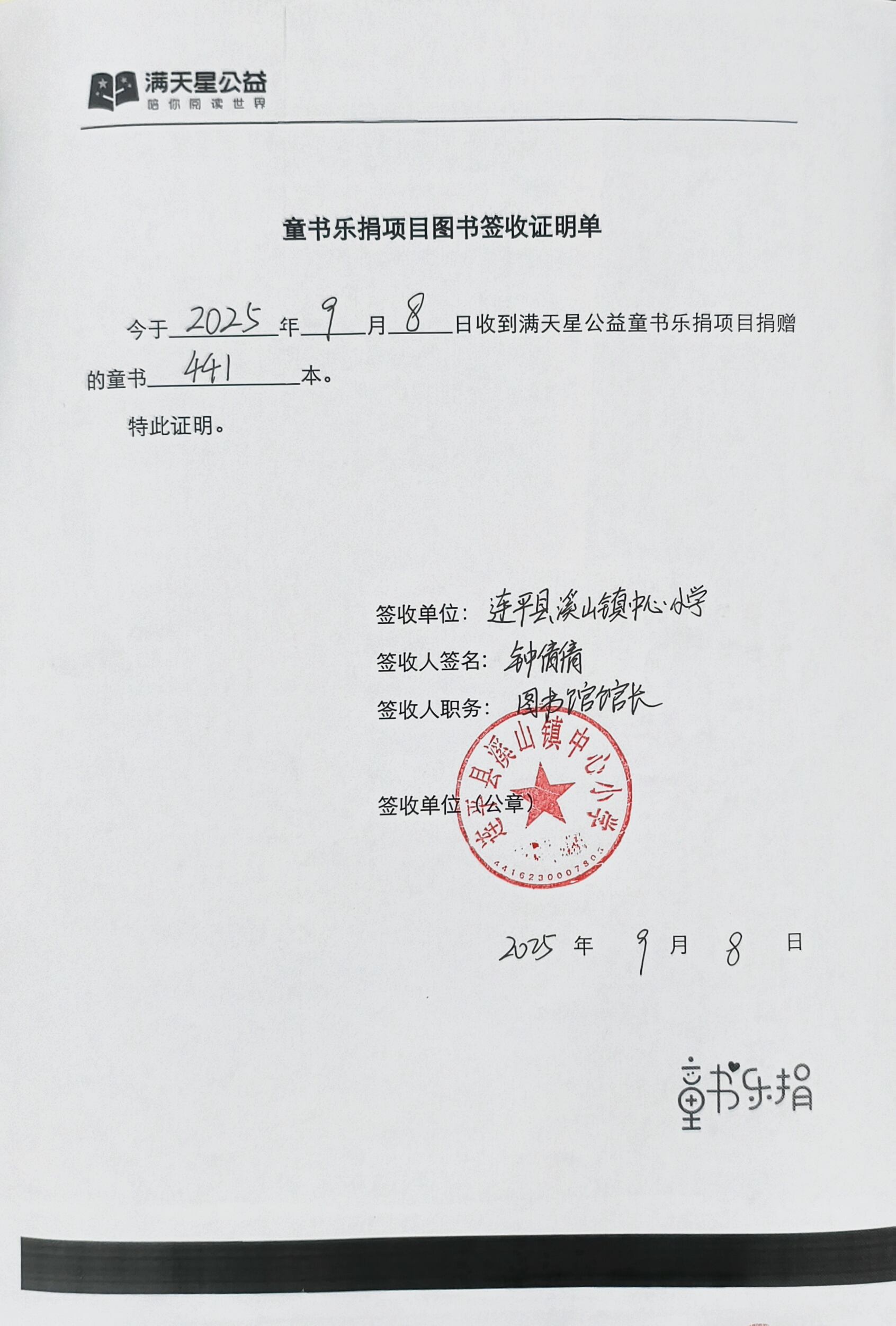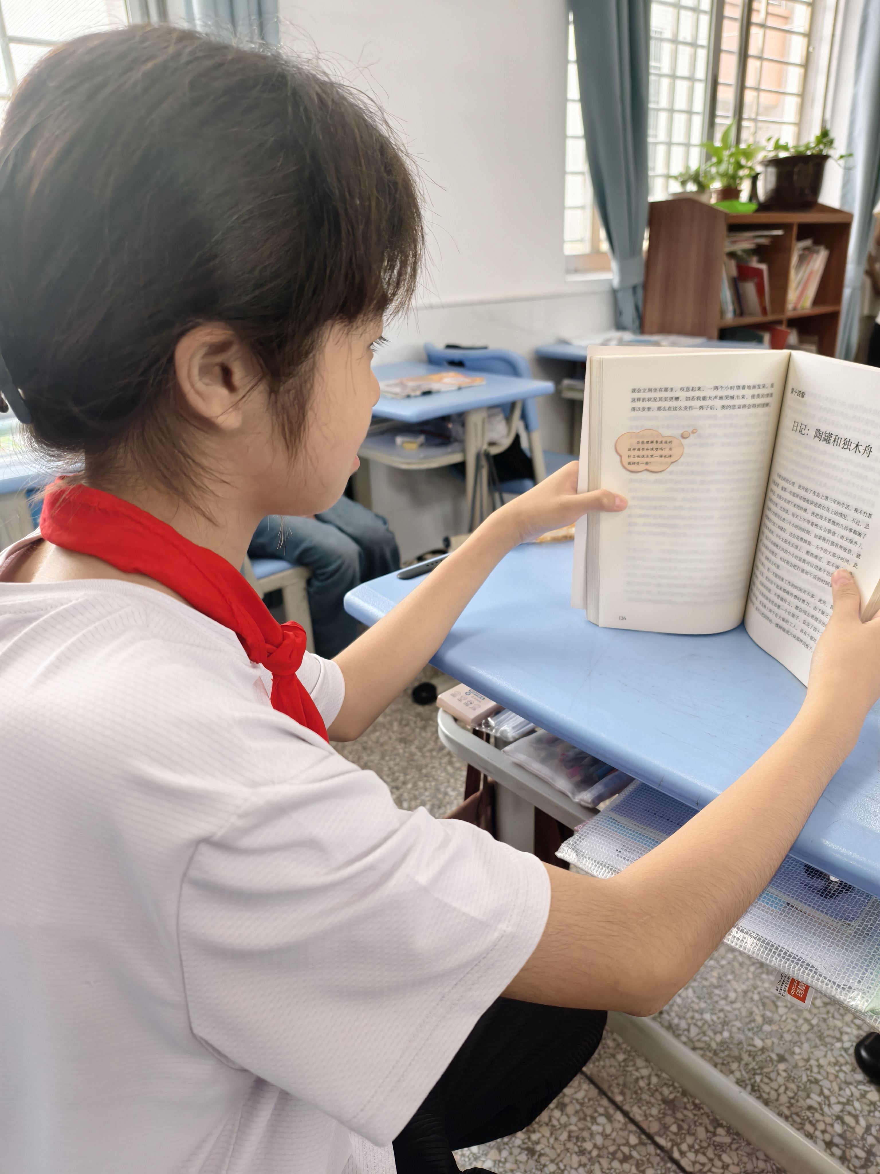 收到图书后的安排:如果接到童书募捐,首先我们会按照满天星图书馆的五色分类法进行细致分类。将部分绘本等投放到低年级教室图书角,方便孩子课间随时翻阅。中高年级适用书籍充实到学校图书馆,由管理员依照借阅制度统一管理,方便学生定期借阅。接着,围绕这批童书开展丰富活动。例如举办阅读分享会,鼓励学生分享读书心得,激发阅读热情。还能开展主题阅读月,如“科普探索月”“文学经典月”,搭配新书拓展阅读。此外,设立班级漂流书架,让童书在班级间流动,提升利用率,让每本童书都充分发挥价值 。我觉得阅读对学生而言,是成长路上的启明星。阅读就像一座知识宝库,每一本书都是一扇新大门。科普读物能为学生揭示宇宙的奥秘,历史传记则带他们穿越时空,拓宽视野,帮助他们建构起对世界全面且深刻的认知体系。 我本身是语文老师,我清楚地知道在语文素养提升上,阅读的作用立竿见影。丰富的词汇、多样的句式在阅读中不断积累,学生写作时不再词穷,遣词造句更得心应手,阅读理解能力也显著增强,能精准把握文章内涵。同时,阅读也能塑造品格。在书中感受主角的坚韧、善良与勇敢,学生潜移默化受到感染,懂得关爱他人、直面困难,价值观与道德观在文字滋养下健康发展。阅读让学生在知识、能力、品格上全面蜕变,引领他们走向充满无限可能的未来。