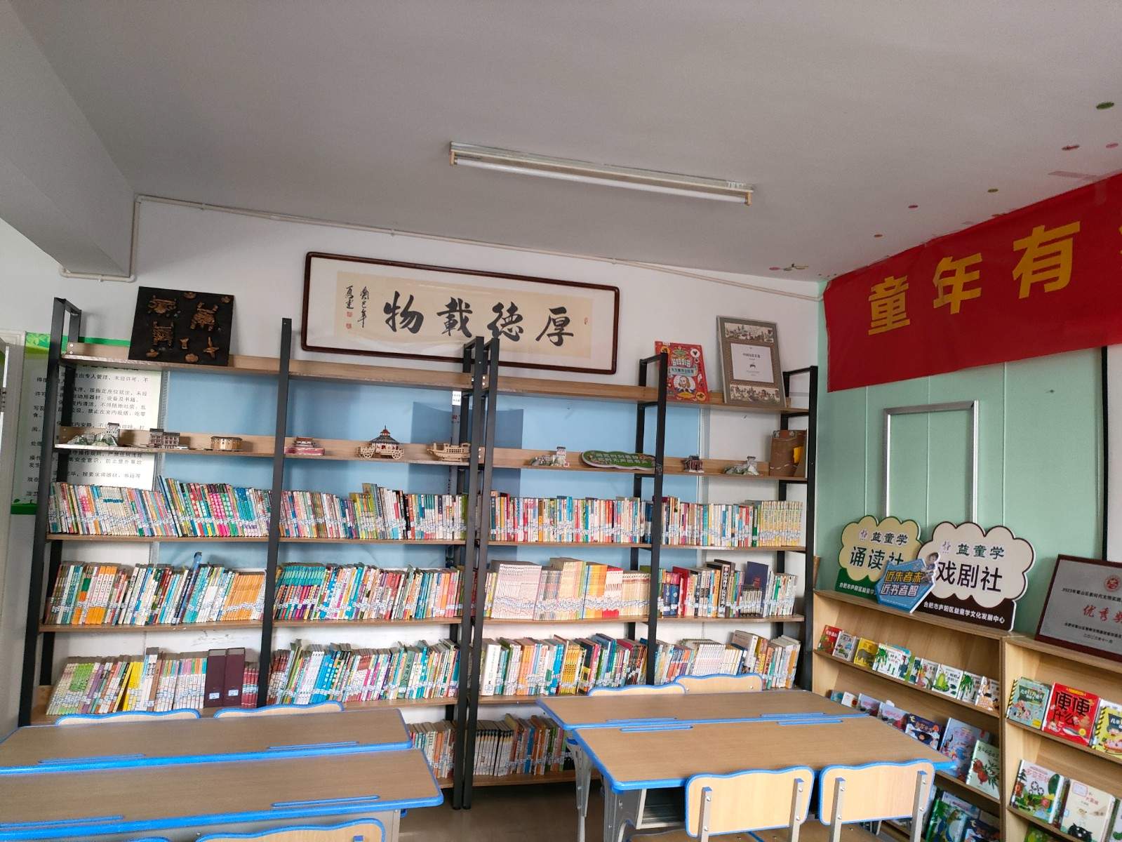 龙居社区美知书屋位于合肥市蜀山区五里墩街道综合文化站。龙居社区美知书屋现有图书1500册,面向辖区居民免费开放,周内开放时间16:00-19:00;周末开放时间:9:00-18:00。书屋主要提供借阅,主题读书会和一些阅读社团活动。随着服务对象的增加,图书数量不能满足居民的需求,需要补充更多童书。2023年6月,在原来的农家书屋的基础上做了一些调整和改造。文化站总面积400平米,其中图书室面积100平米,图书册数1500本左右,童书的数量有限,志愿者资源不太丰富。除了借阅之外,周末主要以主题诵读,特色阅读社团活动为主。2025年年初益童学发布了招募100个积极行动者共建30+社区书屋项目。期待更多社区书屋活起来,但是,大多数社区书屋的图书数量不足,尤其是童书的数量不足。