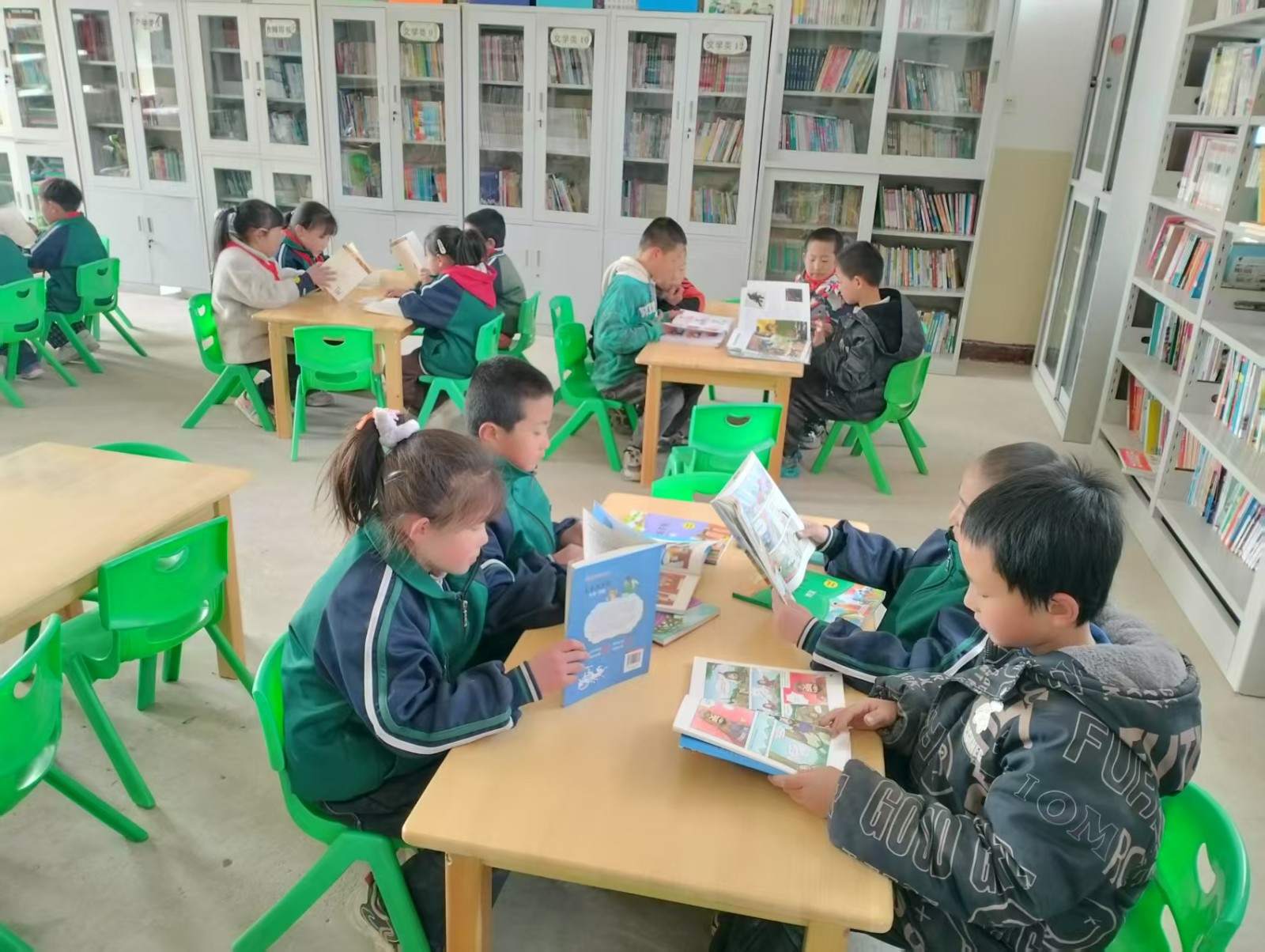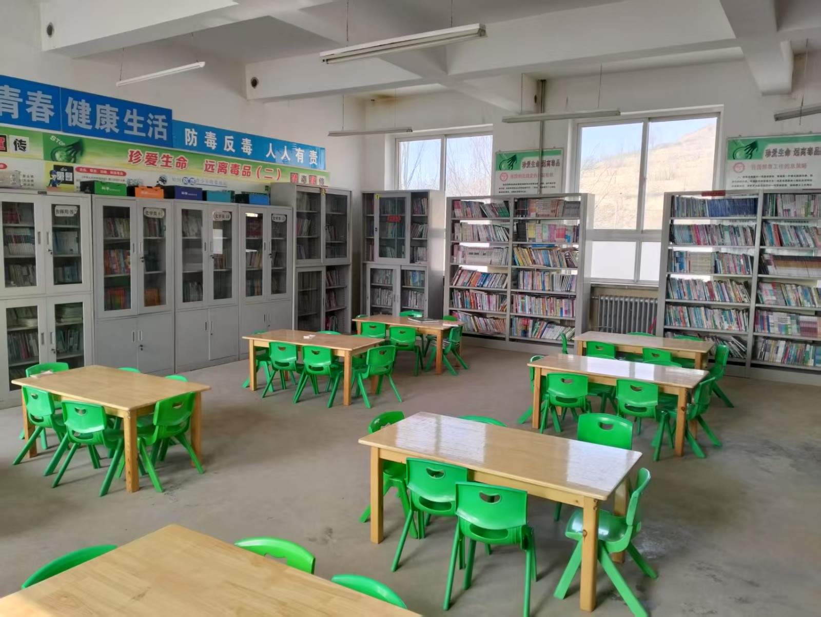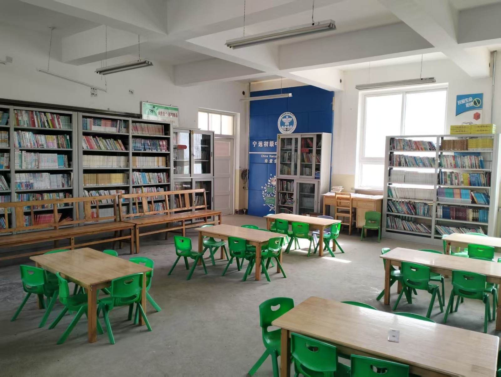 我校图书室有两间,藏有大量的图书,班级内和楼道内也设置了图书角,供学生方便阅读;但图书大多是旧的图书,种类不齐全,不符合现在的学生进行阅读,可供学生阅读书籍太少,真切希望有大量的图书补充到学校,以满足学生阅读的需要。我校图书室目前可一次容纳30名学生共同阅读,但由于我校是农村学校,图书馆目前尚未配置电脑和扫码枪等设备,启用的是纸质图书借阅登记薄,学生阅读大部分在教室进行,教师阅读在办公室进行。由于农村教师思想相对落后,在阅读方面积极性不够。