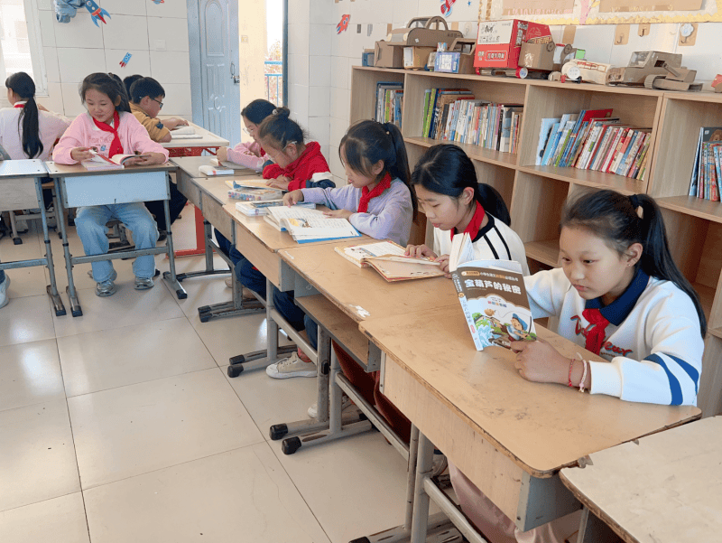 河南省新密市来集镇中心小学是一所拥有698名学生、35名教师的活力校园。一直以来,学校极为重视培养师生的阅读习惯,努力营造浓郁的书香氛围。社区公益图书馆位于学校的一楼,前身是闲置的会议室,经改造后焕然一新。馆内宽敞明亮,自然采光充足。室内布置温馨雅致。目前,学校的阅读氛围较为浓厚,每周都会安排专门的阅读课,师生们会在图书馆进行沉浸式阅读。但图书馆也面临一些困境,如藏书更新速度较慢,受资金限制,无法及时购入热门新书和前沿学术著作。另外,图书馆的活动形式还不够丰富,对学生的吸引力有待进一步提升,未来仍需多方努力,让这座知识的港湾发挥更大作用。来集镇中心小学有两栋三层教学楼,全校6个年级,共690名学生,35位教师。学校图书馆位于教学楼一楼拐角,二楼东,阅览室位于教学楼东一楼,空间不大,最多可容纳50名学生同时阅读。每周二和周四下午的最后一节课是全校统一的阅读课,届时各班级学生会有序前往图书馆。平常课间与午休时间,也有不少学生前来借阅。目前,图书馆每周借阅量能达到50人次左右,热门书籍集中在儿童文学与科普类,像《小王子》《神奇的校车》系列总是供不应求。在运营过程中,学校摸索出不少实用经验。教师志愿者会根据学生年龄段和阅读水平进行针对性推荐,帮助低年龄段孩子挑选图文并茂的绘本,引导高年龄段学生尝试经典文学作品。图书馆还定期开展“图书漂流”活动,鼓励学生分享家中闲置书籍,丰富了馆藏,也增进了学生间的交流。