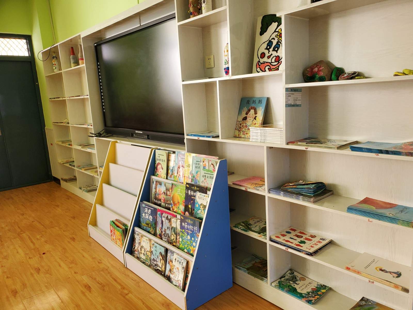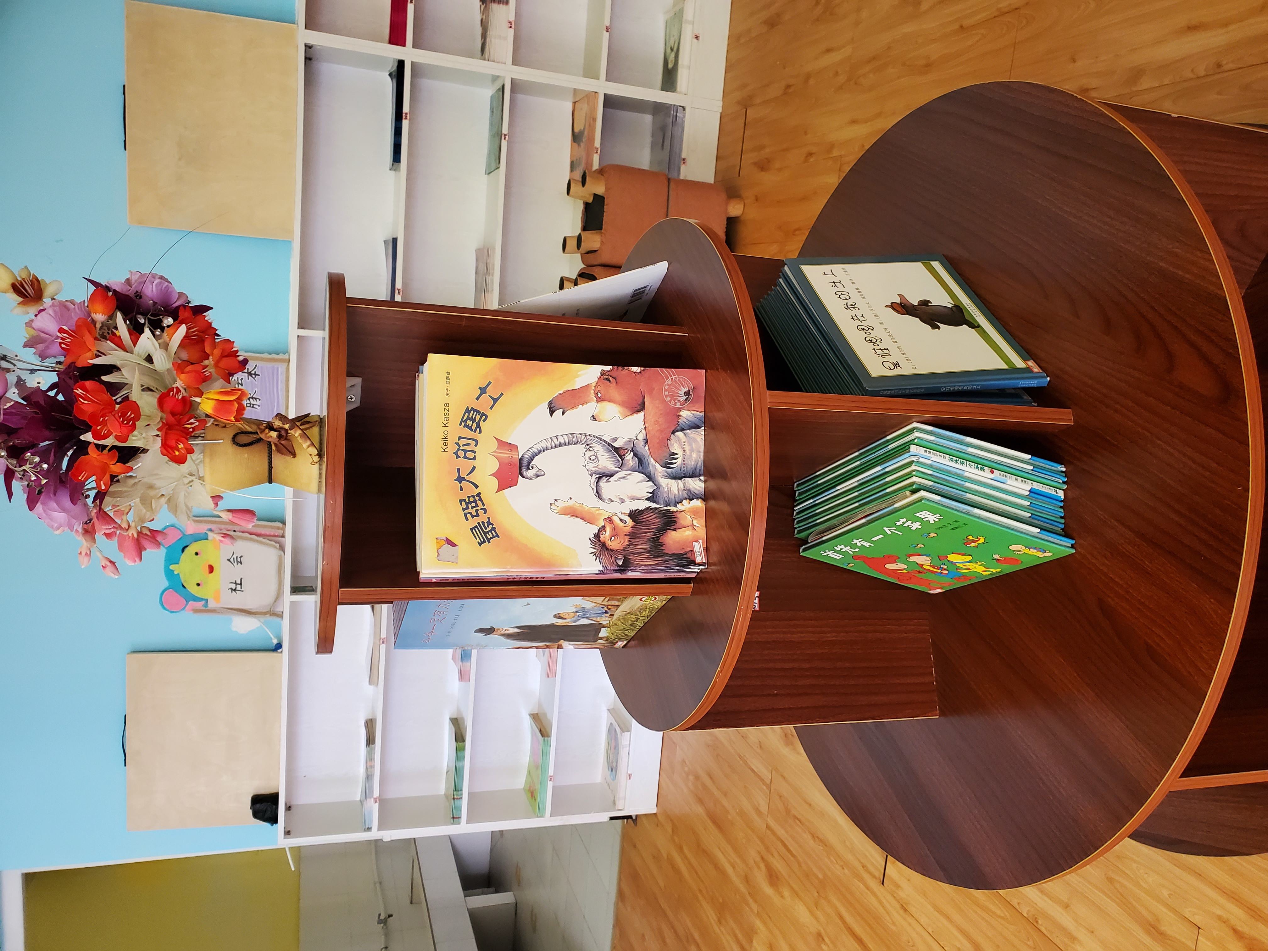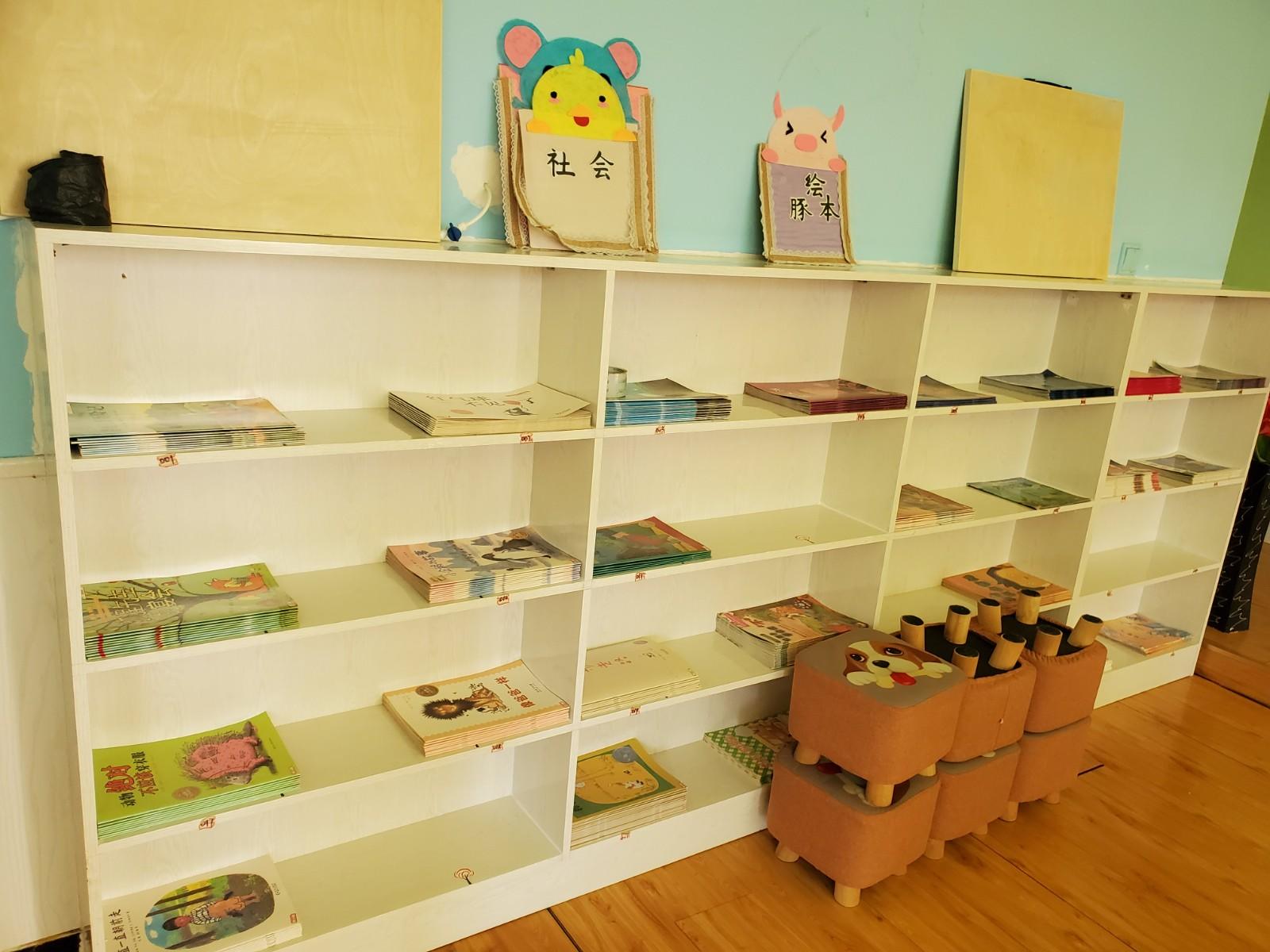 幼儿园设有绘本馆一间,图书量仅有660册,配有书桌、书架、幼儿沙发,温馨舒适的环境很适合幼儿阅读,在每周二和周四下午由家长进绘本馆与幼儿一起阅读,共享亲子时光,促进亲子间的交流。但复本量无法满足全园幼儿园阅读。图书馆每周二和每周四下午17:10--17:40,安排一次亲子阅读,没有配置电脑及扫码枪等设备。幼儿自主选择绘本,由家长共同陪读,由此促进亲子间的交流,从而也促进了家园之间的联系,个别家长如有事不能按时到,由班级教师陪读。
