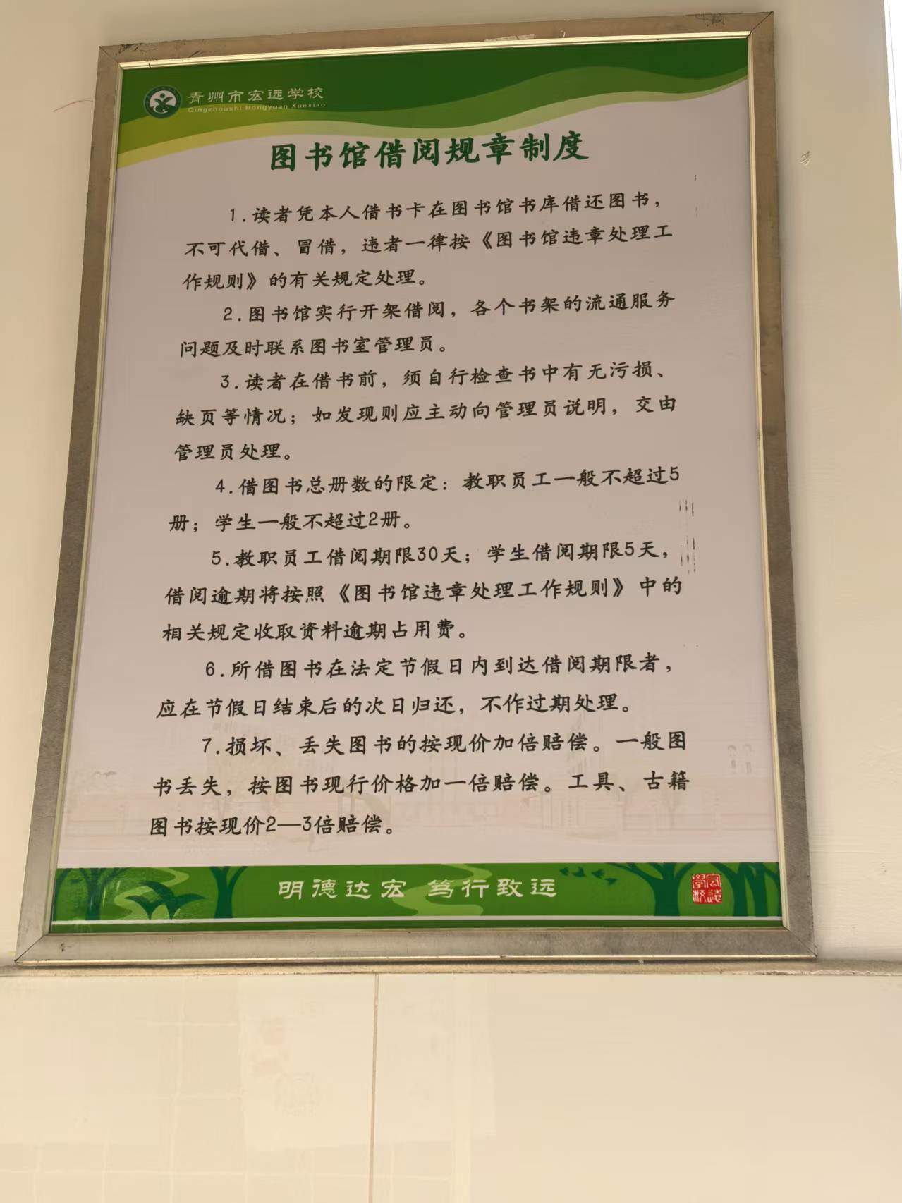 青州市宏远学校在校教师近百人,学生2000多人,学校设图书室。可容纳120人同时观看,有扫码枪,配置电脑。