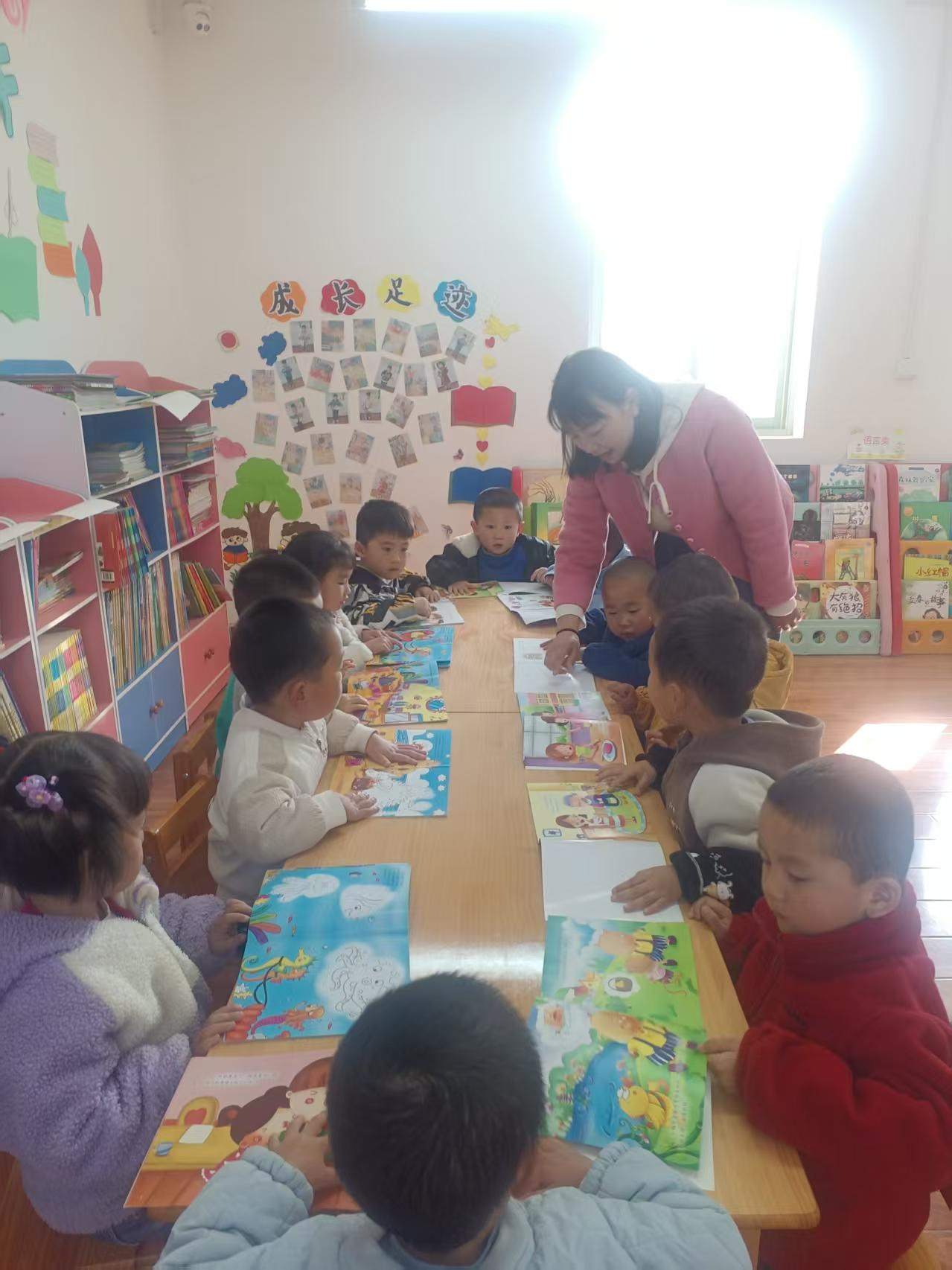 陕西省山阳县高坝店镇过风楼幼儿园位于山阳县高坝店镇过风楼社区,于2014年建园,占地面积3500平方米,目前在园幼儿108人,共3个班级,每班配备“两教一保”,共有教职工15人。幼儿园图书阅览室可容纳学生40人,按照幼儿年龄特点配置桌凳及修补图书工具,未配置电脑及扫码枪等其他设备。教师在区域活动时带领幼儿到阅览室开展读书、讲故事活动,平时引导家长带领幼儿在家开展亲子阅读活动,因此家长可在园借图书进行亲子阅读。
