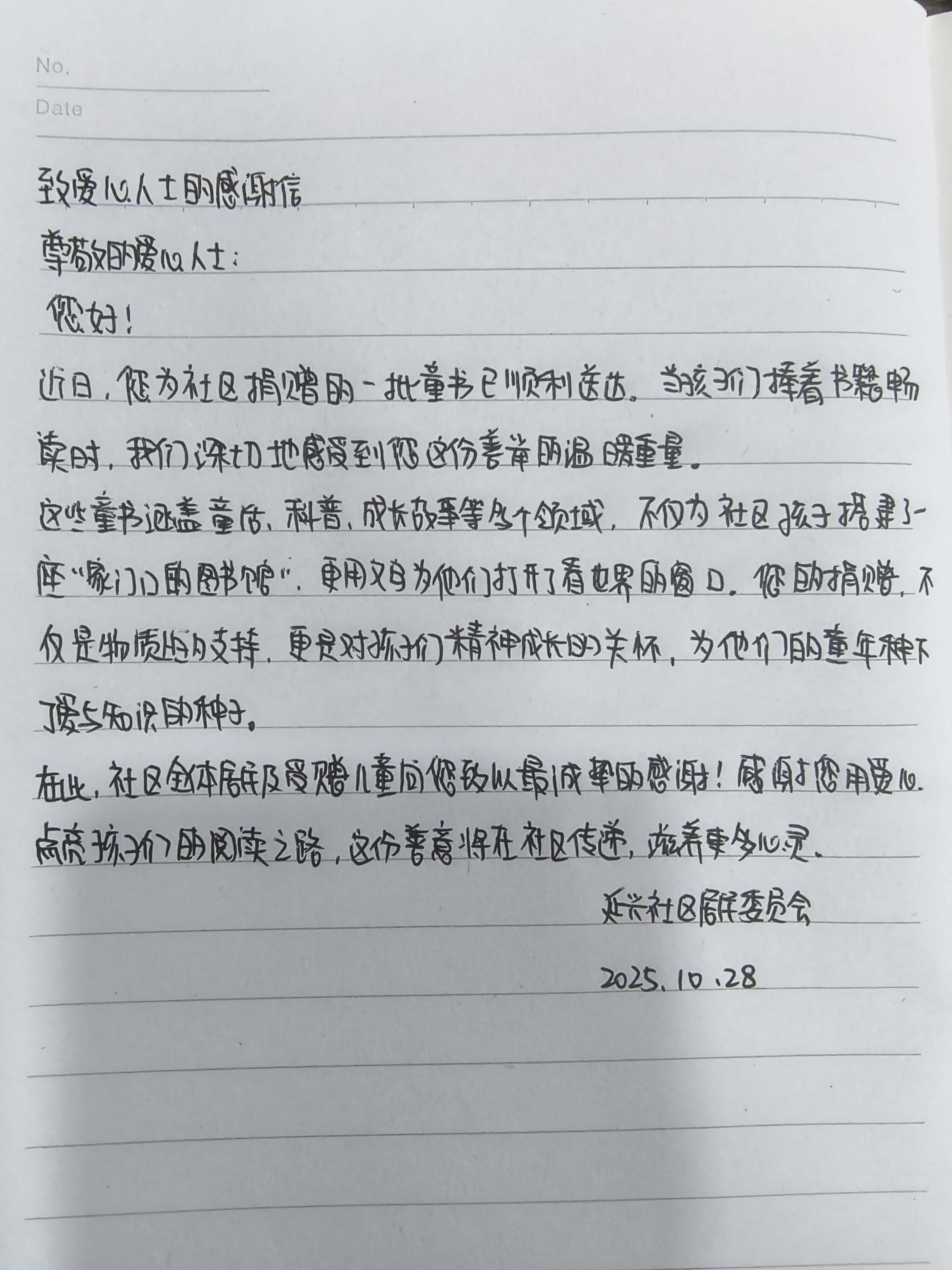 ——收到图书后的安排:社区公益图书馆接收乐捐童书后的具体使用计划如下: 分类整理上架:按主题(绘本、科普、童话等)分类上架,方便儿童及家长查找借阅。 开展阅读活动:结合图书资源组织绘本故事会、亲子共读、主题阅读分享等活动,提升童书利用率和阅读趣味性。 设立流动书架:在社区服务中心、儿童活动区等场所设置流动书架,定期轮换图书,扩大覆盖范围。 建立借阅机制:明确借阅规则(如借阅时长、数量),鼓励家庭长期借阅,同时通过登记跟踪图书流通情况,确保资源有效循环。