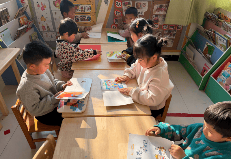 高碑店市新城镇培鹏幼儿园位于新城镇袁家营村村南,2016 年 10 月投入使用。园里目前有 4 位老师和 43 名幼儿。因为教室面积不大,我们把书架固定在墙角,勉强划出一块“阅读区”,只能摆一排小书架,孩子想坐下来看书就得把椅子搬到一旁。现有书的来源一部分是建园时镇上统一发的,一部分是家长偶尔拿来的旧绘本,加起来不到400本书,重复的、缺页的不少。我们老师只能把这几包书按月轮流搬进搬出,孩子们很快就翻完了,新鲜感一过就兴趣寥寥。我们也想再添些书,可园里日常经费主要用于教具和伙食,买新书常常排在后面;老师们对怎么选书、怎么引导孩子精读也缺少培训,只能凭经验讲讲故事。家长大多是爷爷奶奶,白天要忙农活,晚上回家还得照顾一家老小,亲子阅读基本谈不起来。简单一句话:地方小、书少、更新慢,孩子想多读几本好书,真挺难的。高碑店市新城镇培鹏幼儿园图书角自2016年起运营,现有藏书400册,周一至周五全天开放,暂不外借。因经费有限、更新慢,书籍种类少,难以满足幼儿的阅读需求。教师每月轮换班级图书,开展简单共读活动,但缺乏系统指导与亲子延伸。
