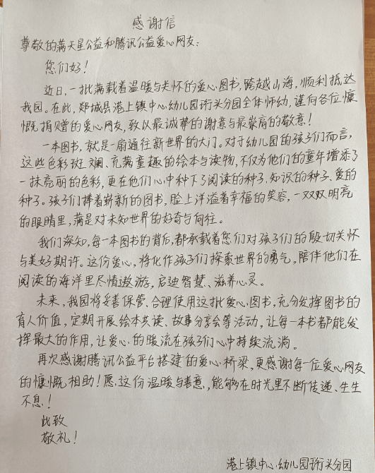 ——申请原因:我园属于乡村幼儿园,相比城市幼儿园,我园在图书资源方面存在明显差距,童书乐捐能为乡村幼儿园输送优质的图书资源,缩小城乡幼儿在阅读资源获取上的差距,让乡村幼儿也能接触到与城市幼儿同等水平的优秀童书,促进教育的公平。由于留守儿童较多,家长意识薄弱,幼儿又正处于认知能力,语言表达能力,想象力等快速发展的阶段,所以丰富多样的童书能够为他们提供广阔的认知窗口,提升幼儿的语言理解和表达能力。